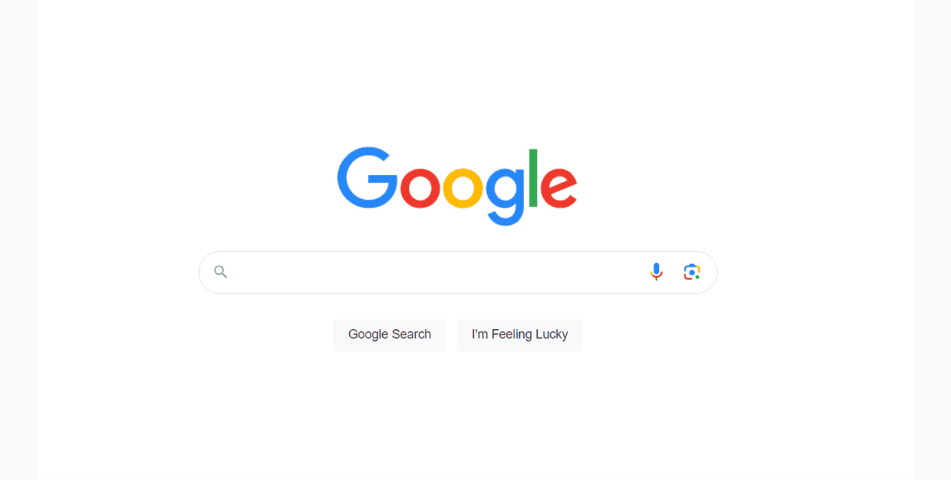 2020 UI: Fast forward to 2020, and Google’s design took a more minimalistic approach. The homepage became cleaner and more focused, with just the search bar and a few essential elements.