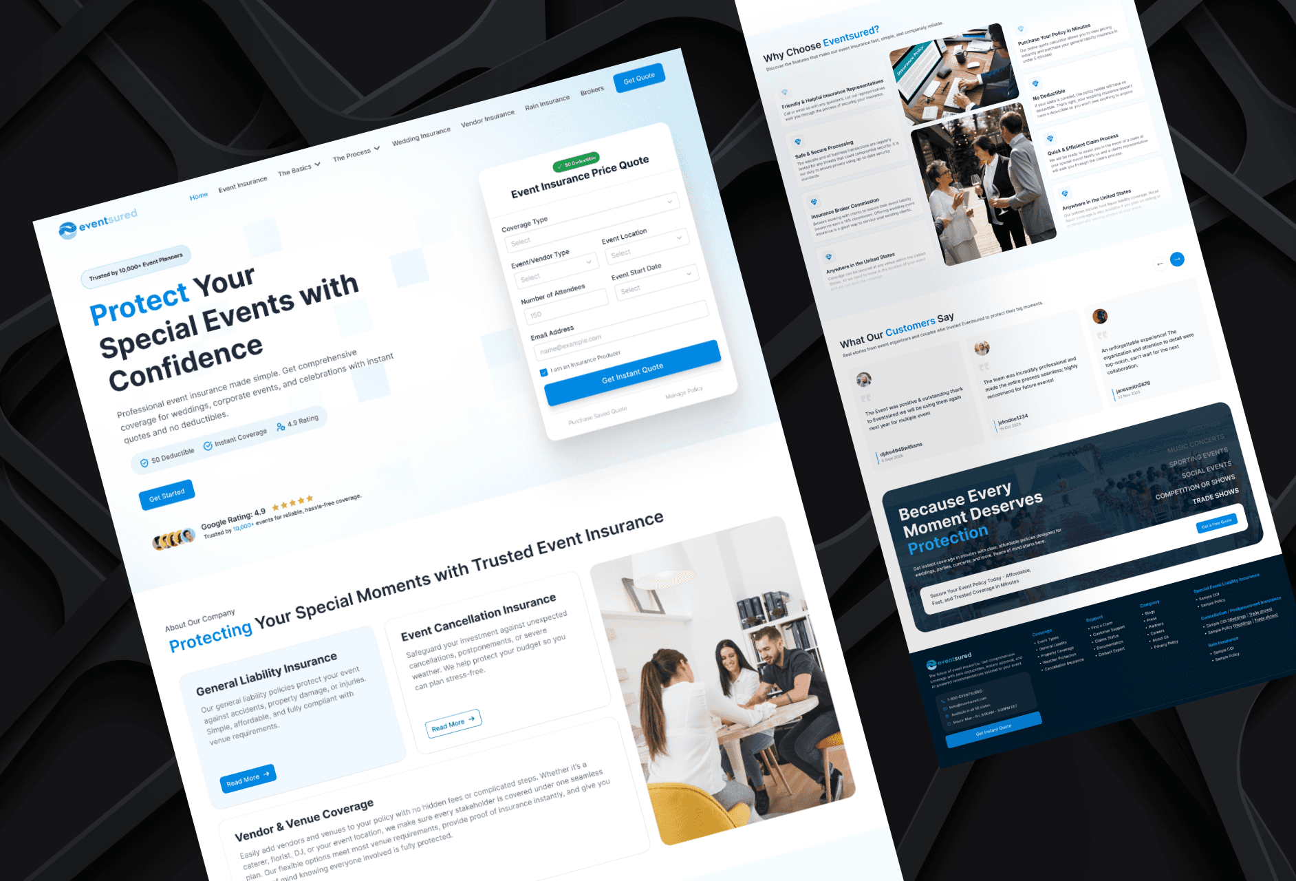 Redesigned Eventsured’s landing page to improve clarity, trust, and guide users toward requesting a quote.