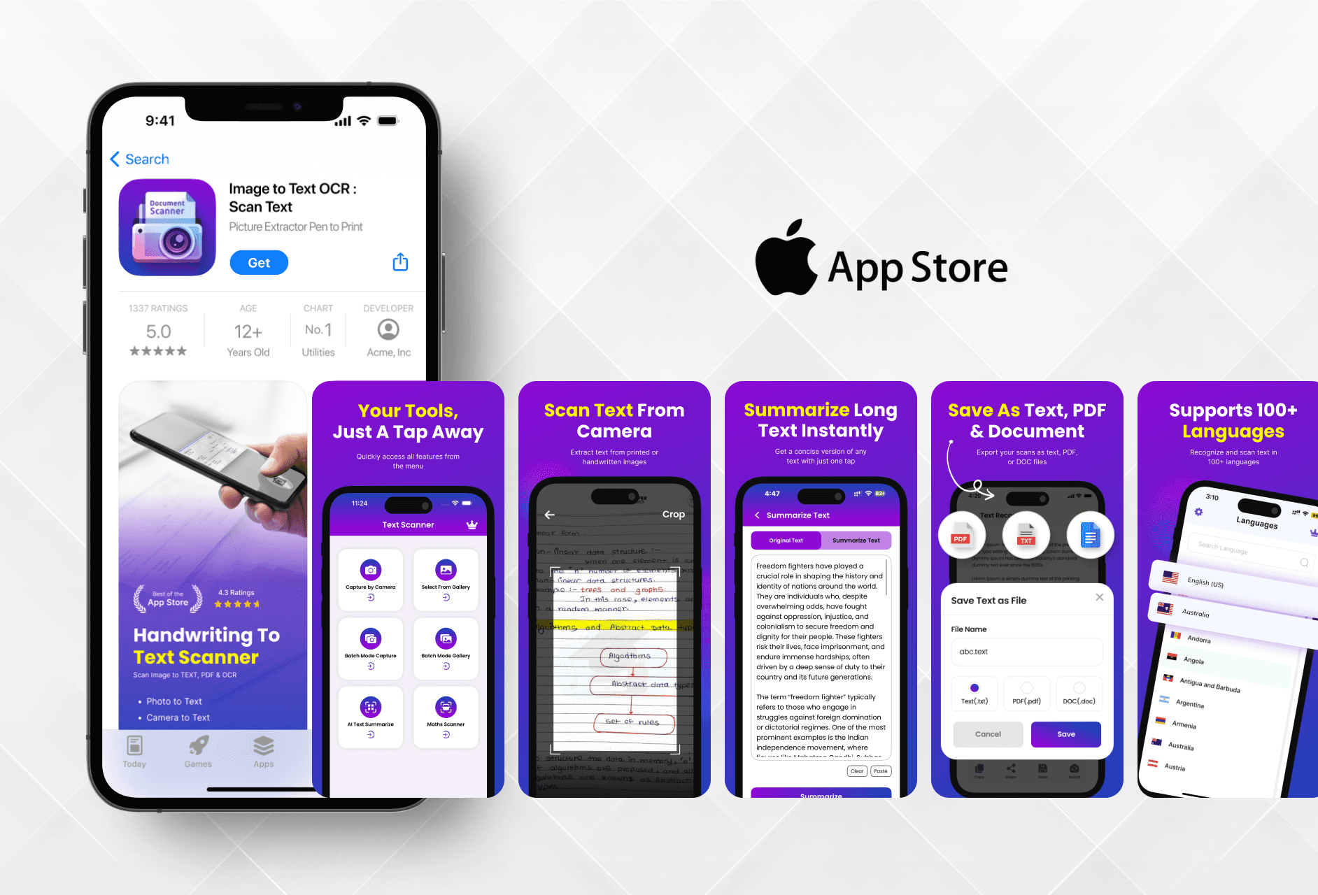 App Store Screenshots and Icon Design for OCR Utility App