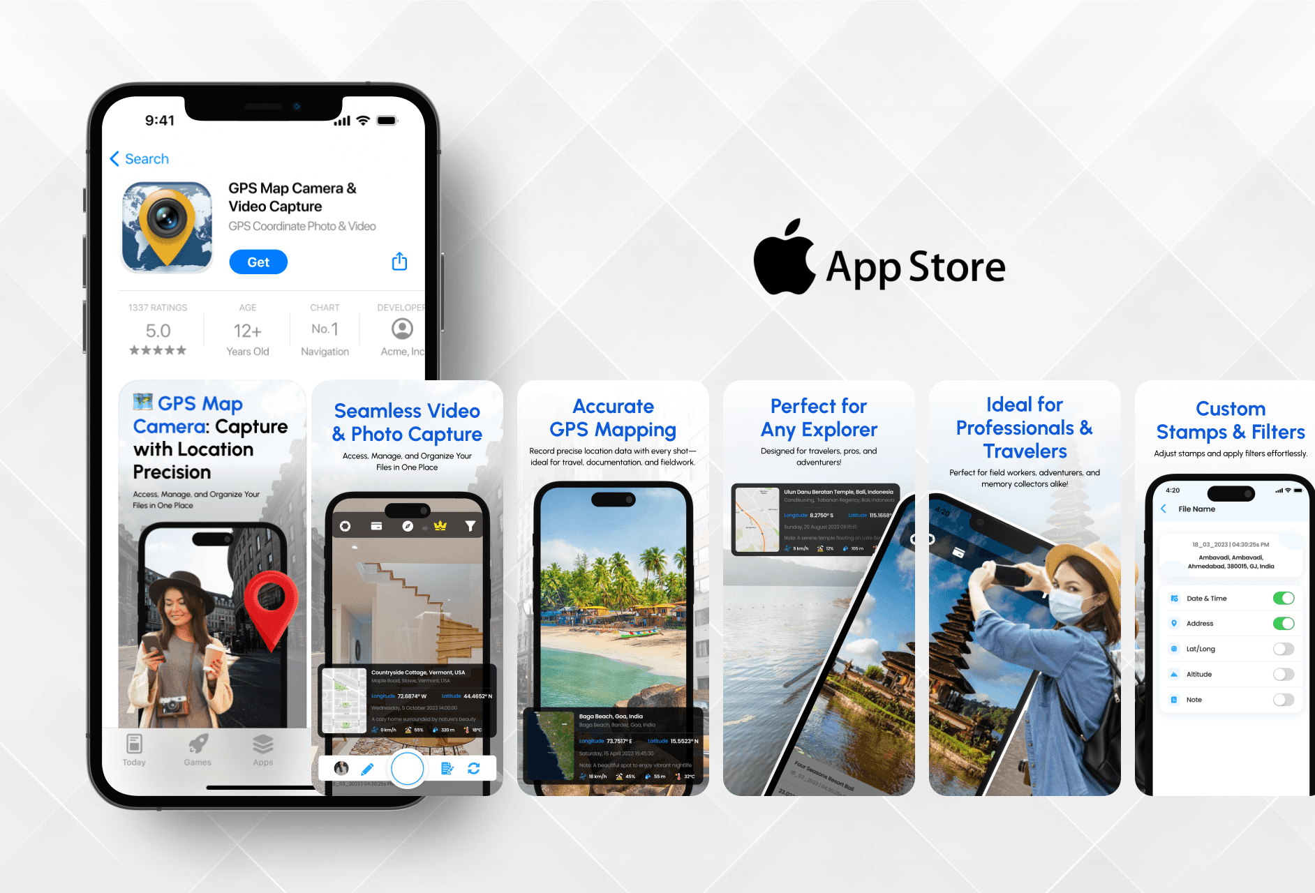 Created app icon and screenshots for GPS Map Camera to improve trust and attract more users.