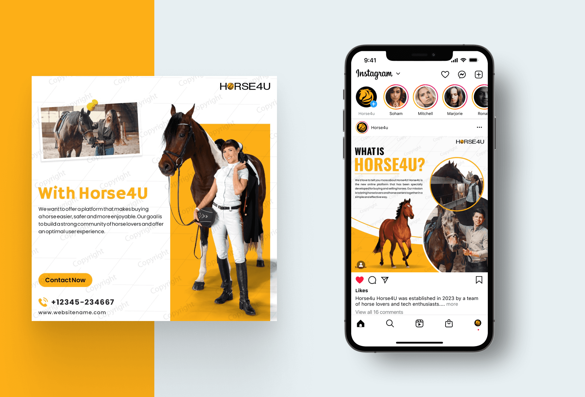 Instagram Post Design for Horse Marketplace Platform Horse4U
