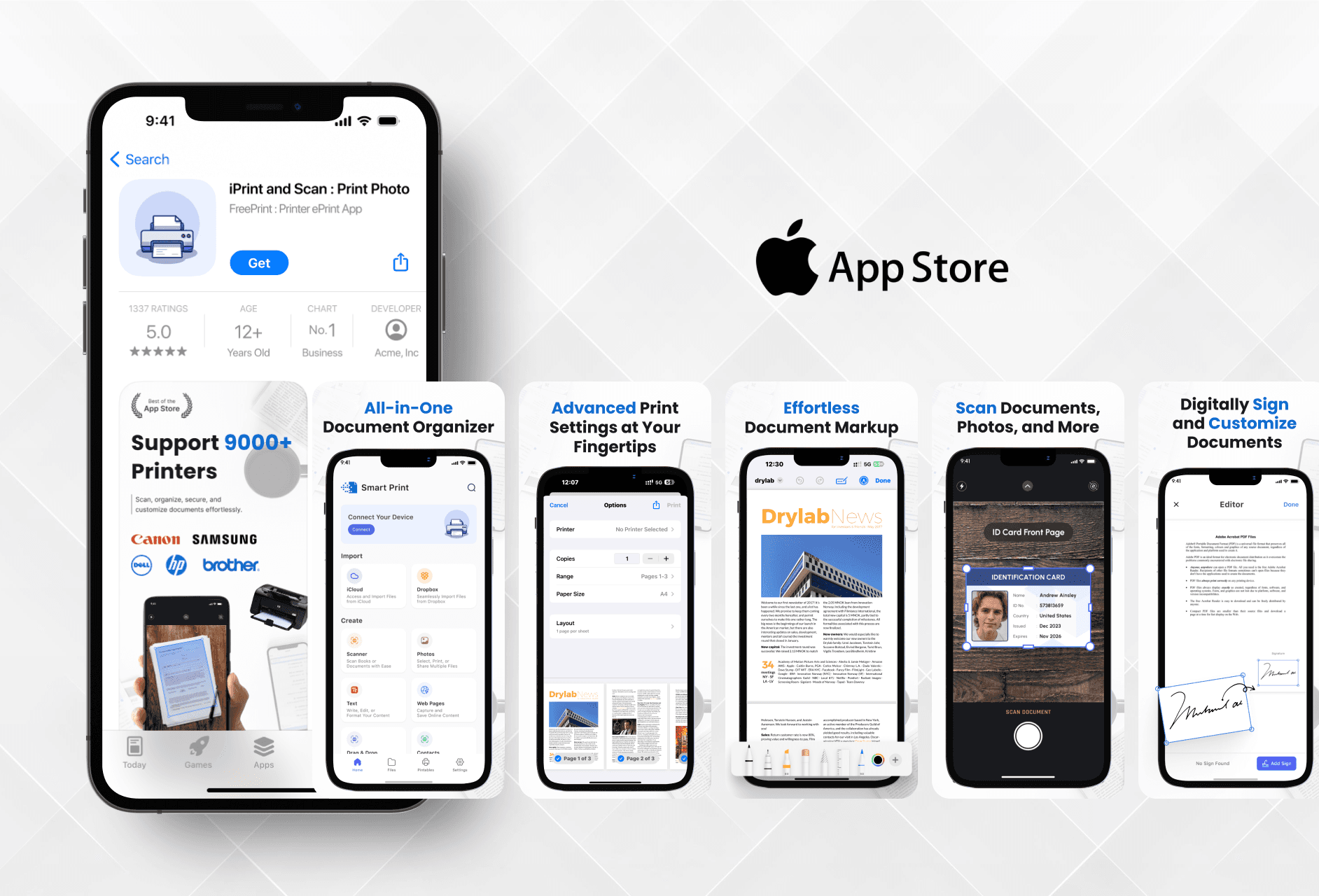 Designed a custom app icon and App Store screenshots for iPrint and Scan to help users understand the app and feel confident using it.