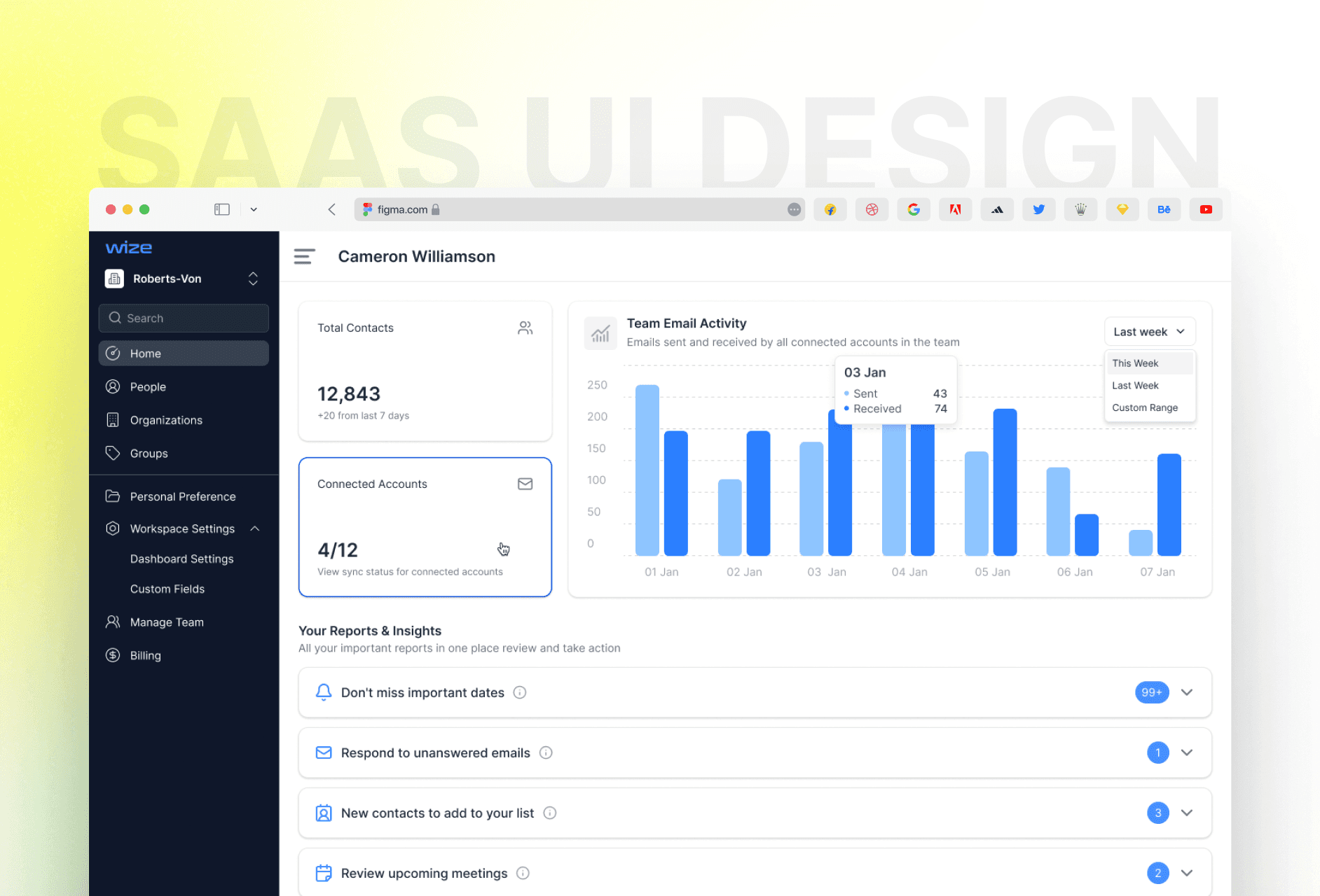 Designed the entire UI/UX of Wize Contacts from the ground up to create a modern, efficient platform for managing contacts, teams, and files.