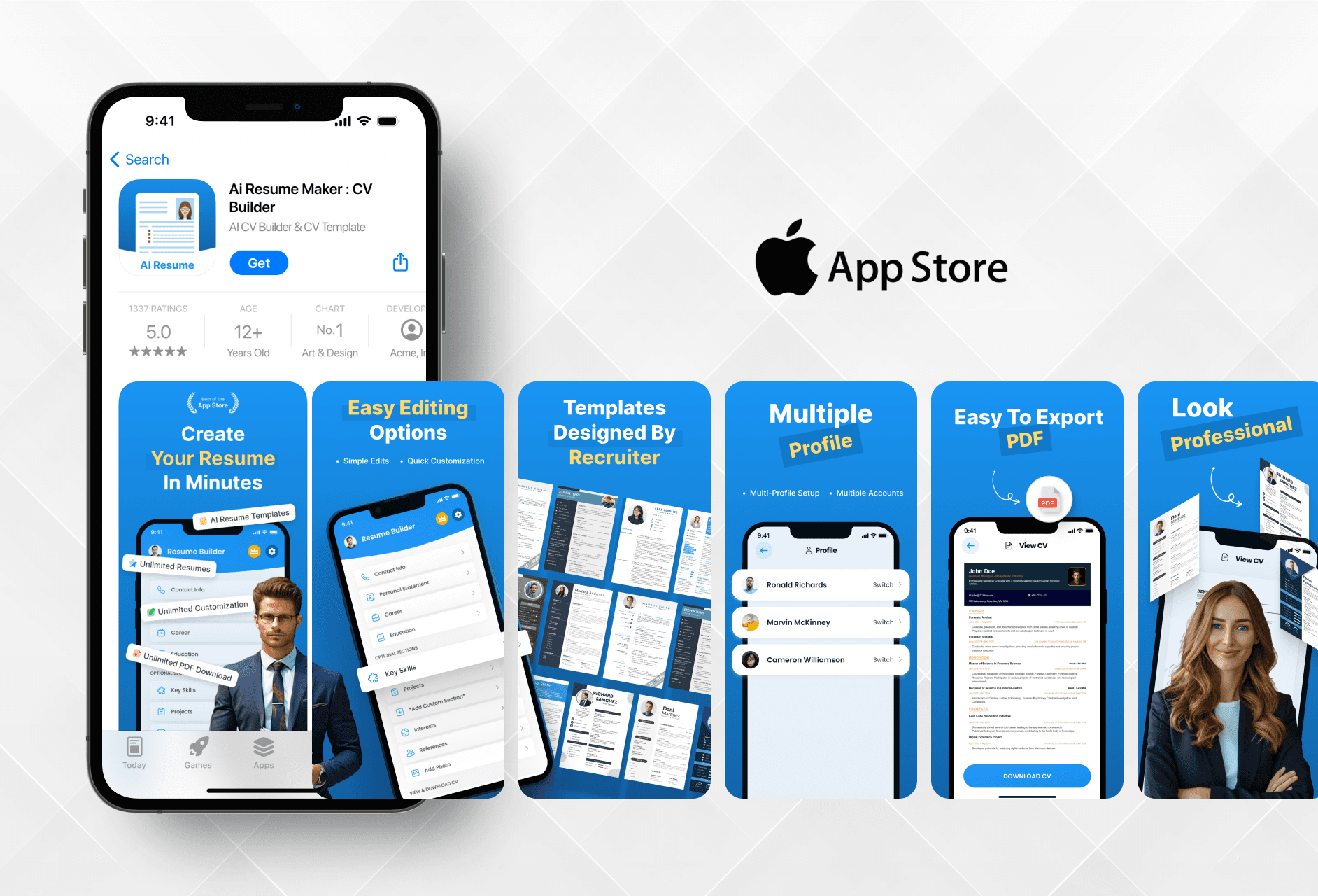 App Store Screenshots and Icon for AI Resume Maker