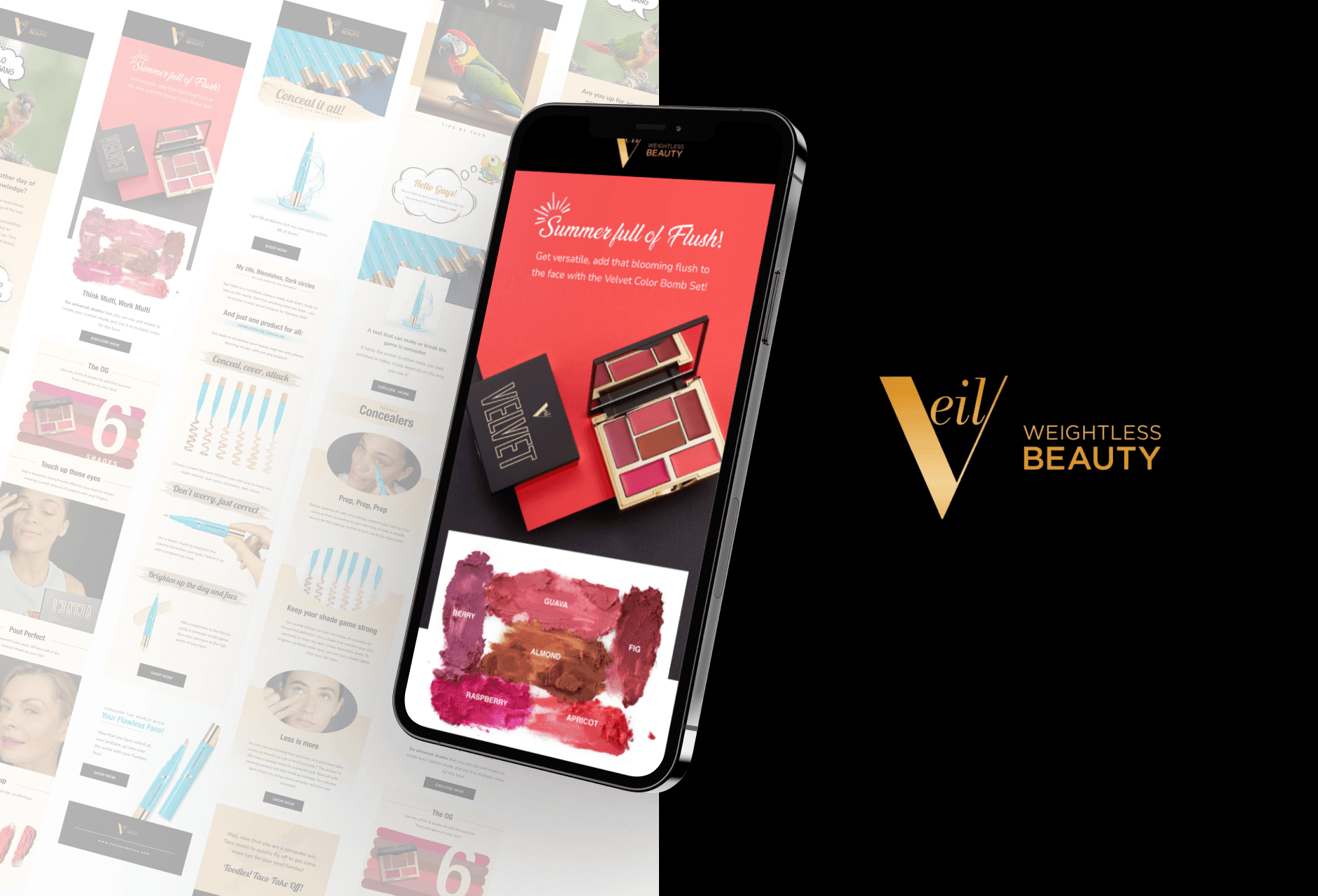 I crafted 60+ email designs to help Veil Cosmetics boost sales and connect better with their audience.