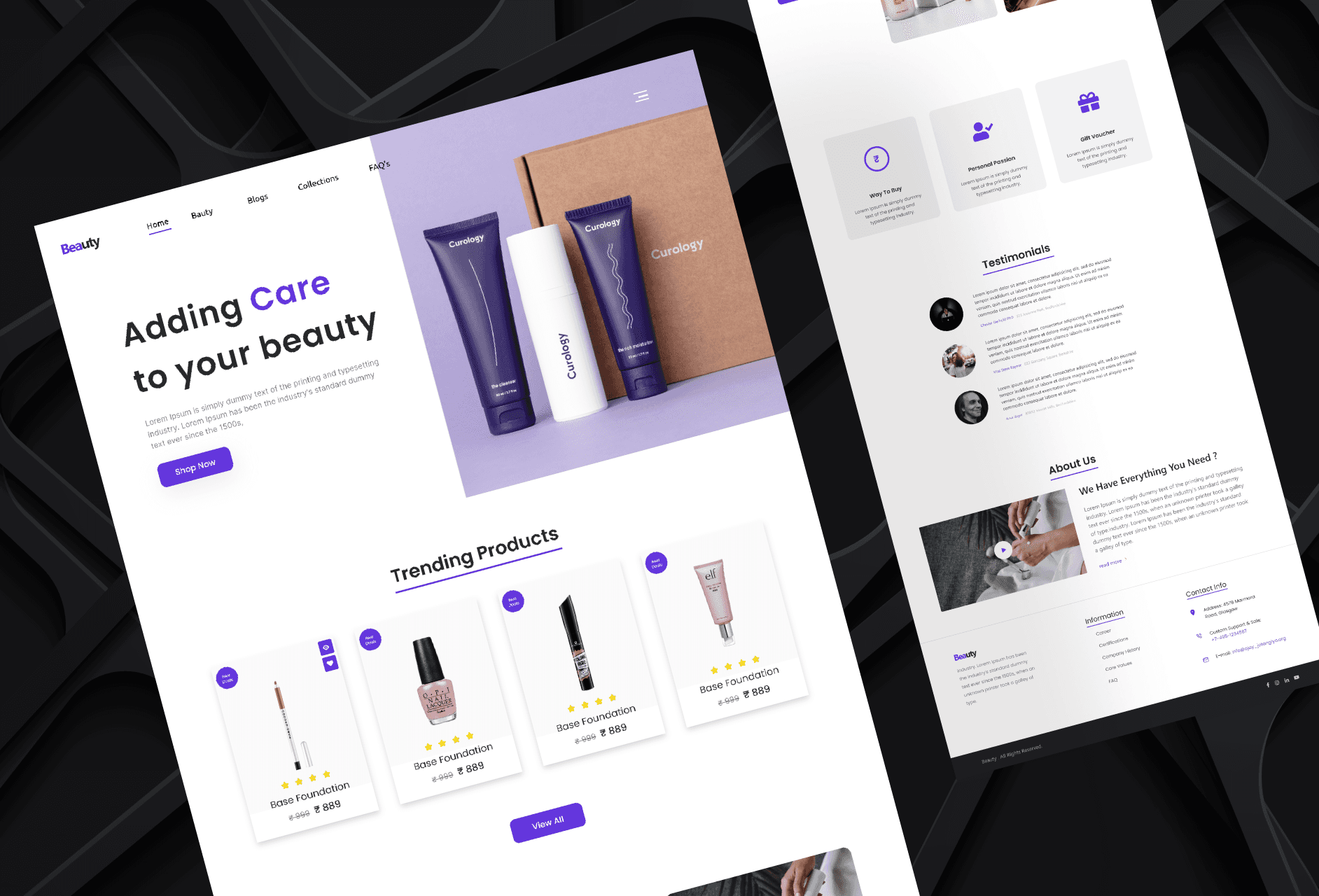 Crafted a stylish and modern landing page for a beauty brand to promote and sell skincare products online.