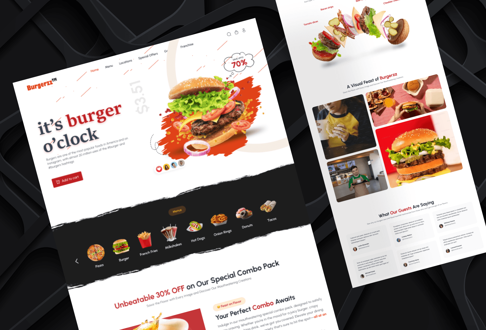 Designed a bold, tasty-looking landing page for a burger joint to showcase their menu and boost online orders.