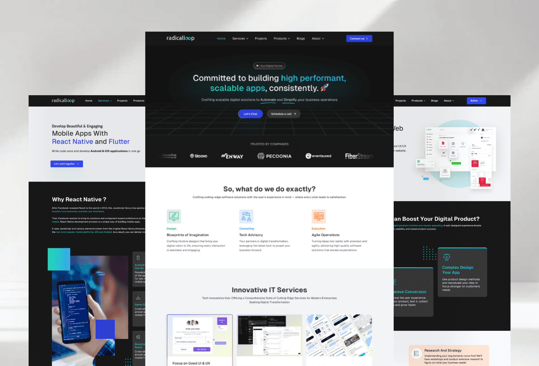 Redesigned RadicalLoop's website to improve user experience and clearly present their development services.