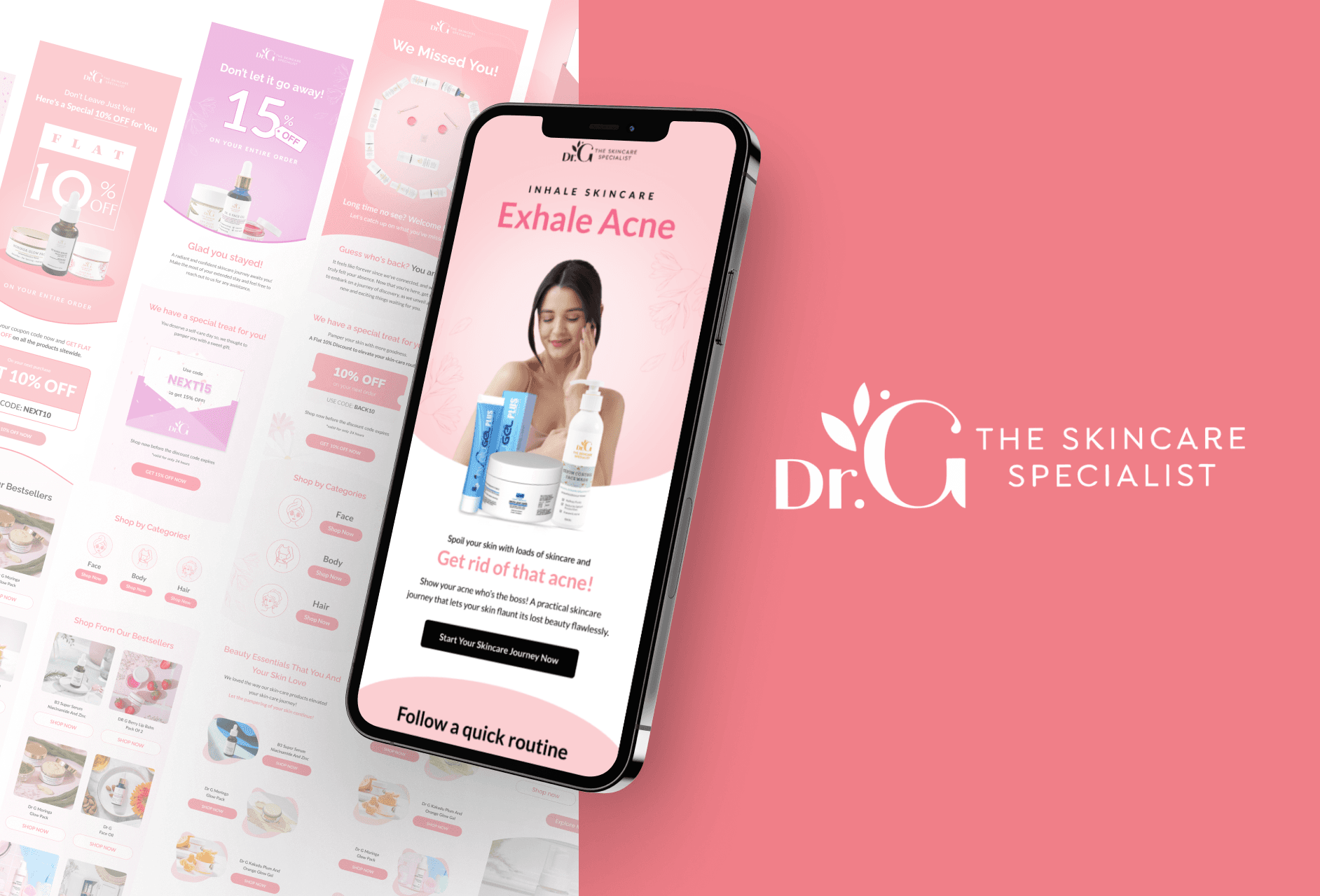 Crafted high-converting email designs for SkinbyDrG across campaign types with brand consistency and user-friendly structure.