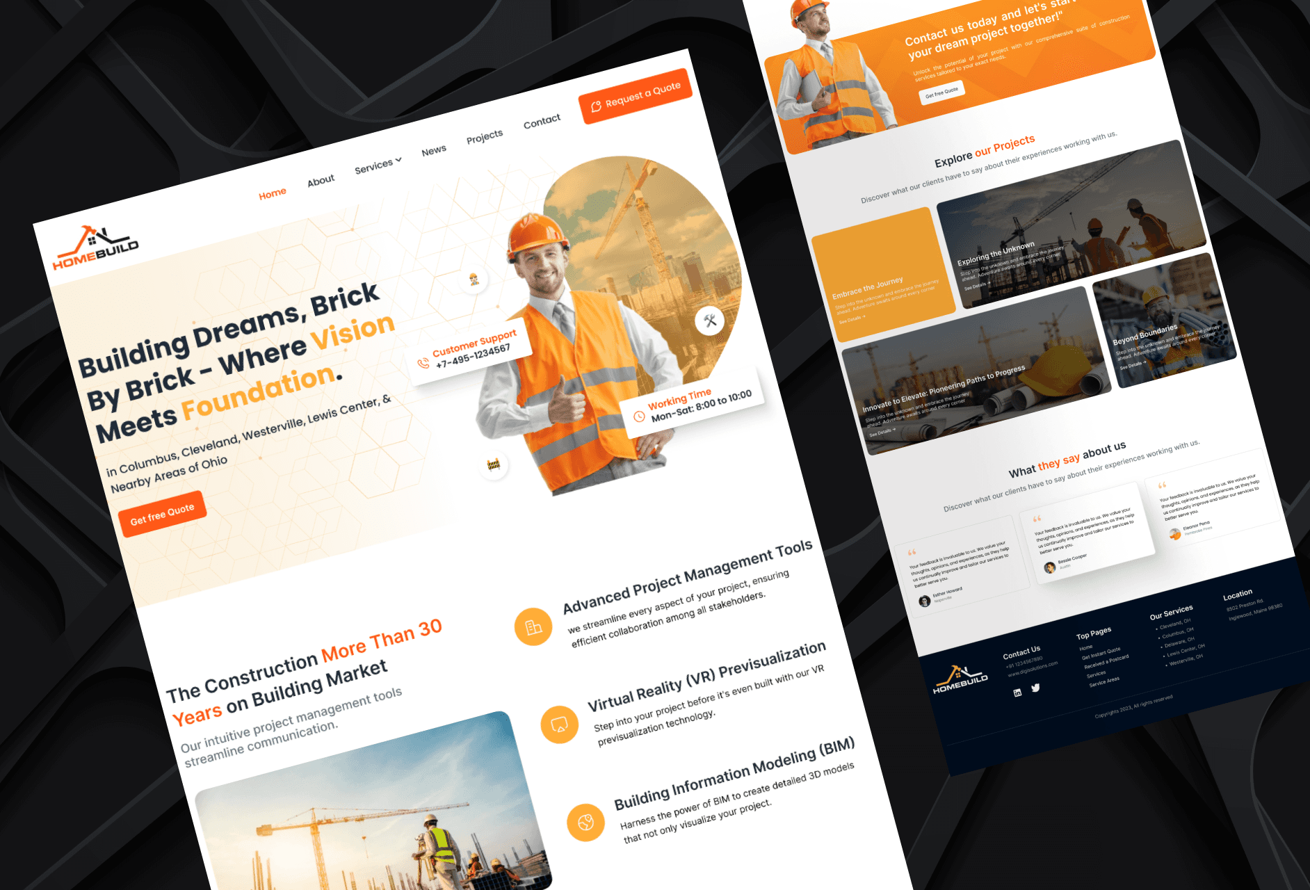 A sharp, orange-themed landing page created to showcase construction services and drive user inquiries with strong CTAs.