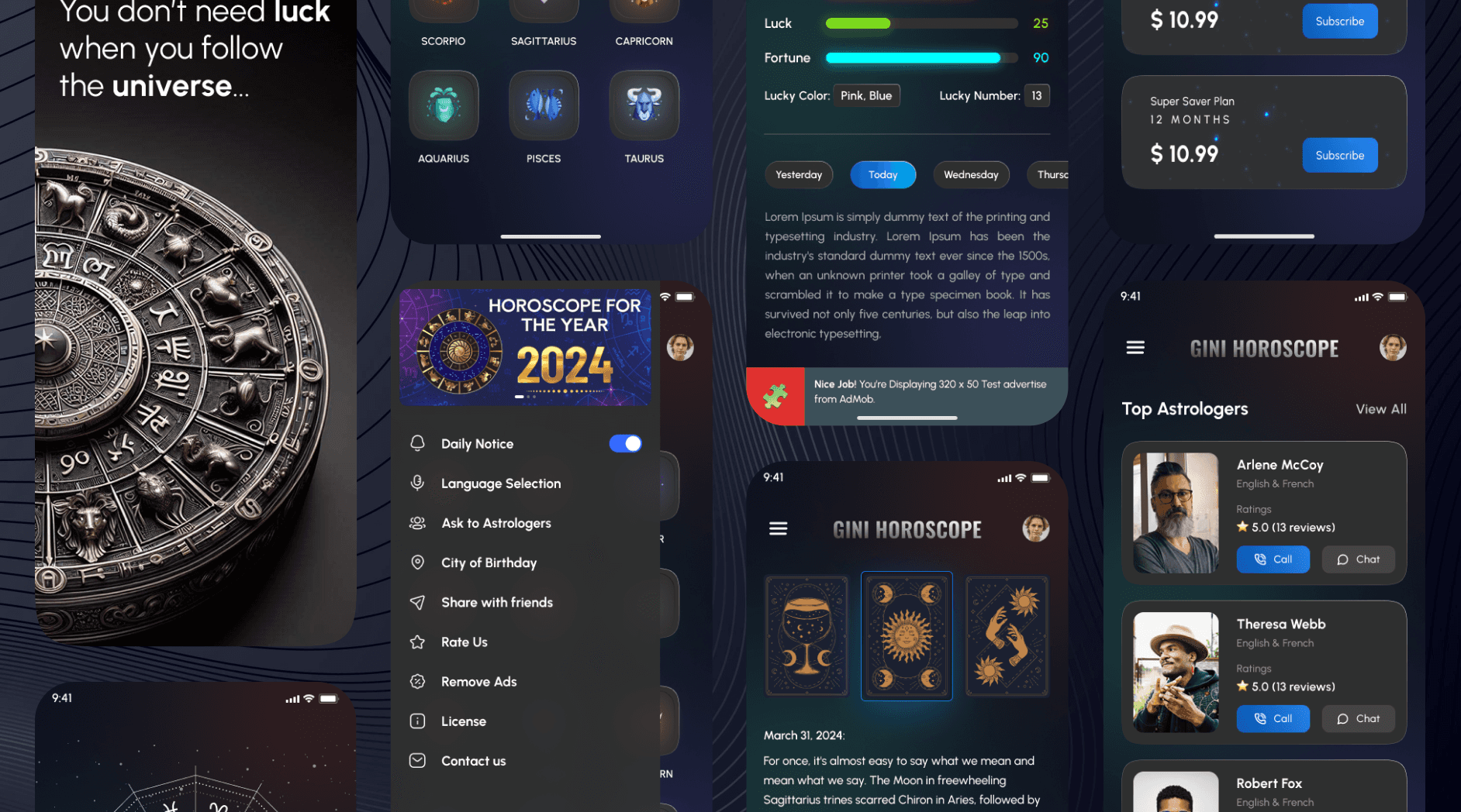 The goal was to develop an app that serves as a daily companion for users interested in astrology. I began by identifying the core features: daily horoscopes, tarot readings, astrologer consultations, and informative blogs.