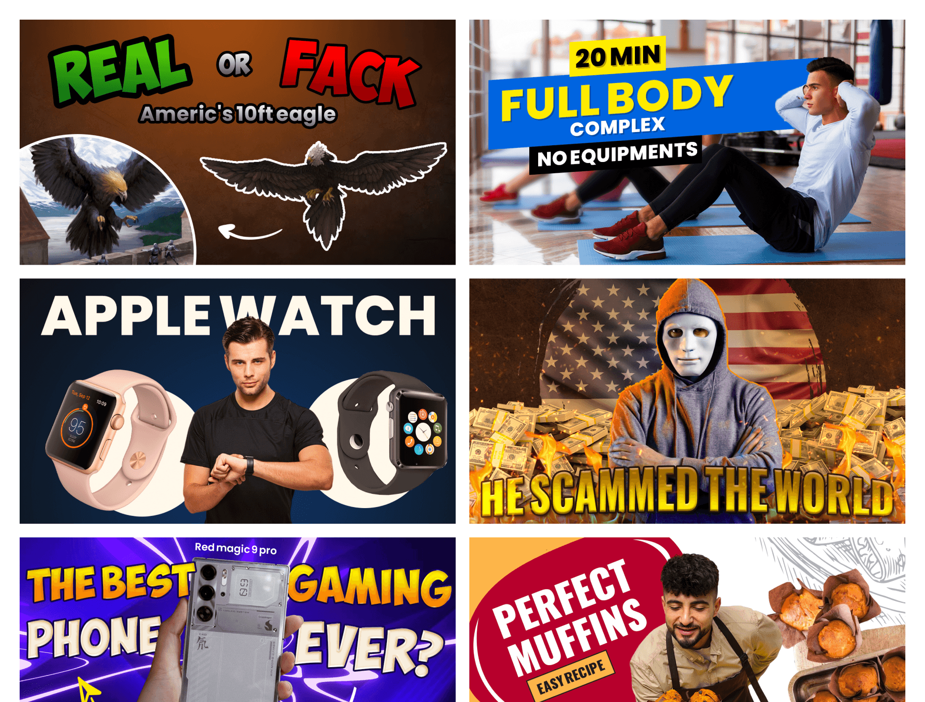 I aimed to create scroll-stopping visuals that reflect each video’s content while boosting viewer interest and click-through rate.