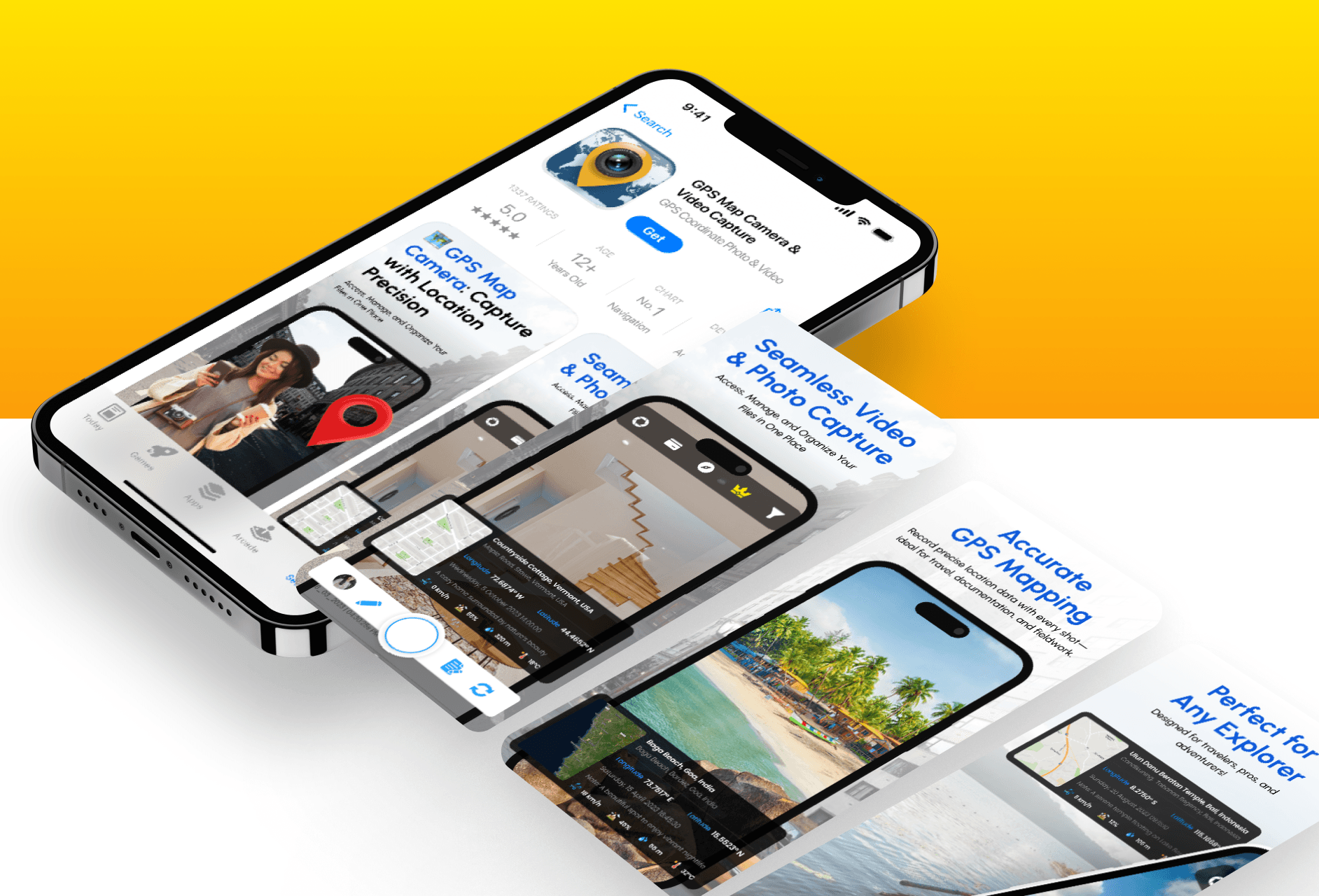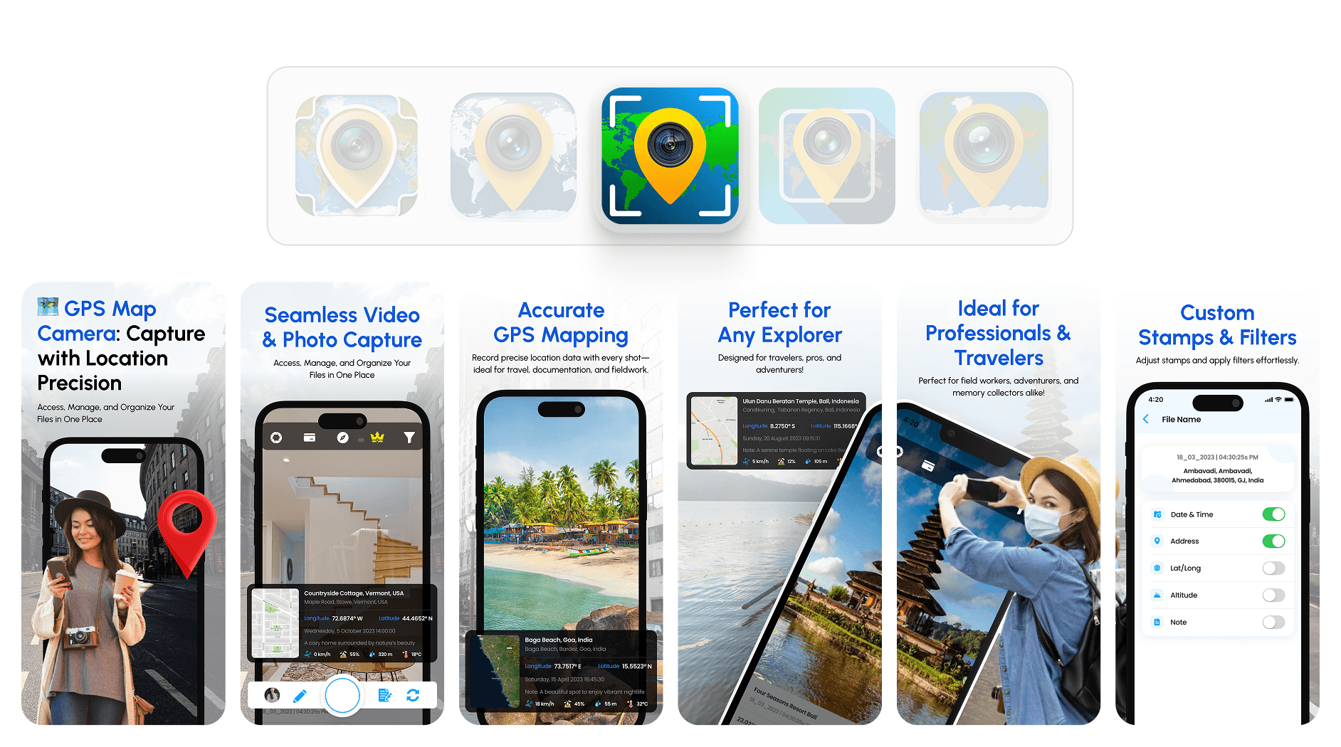 I focused on creating clean and informative visuals that clearly show what the GPS Map Camera app does, while keeping the design trustworthy and easy to follow.