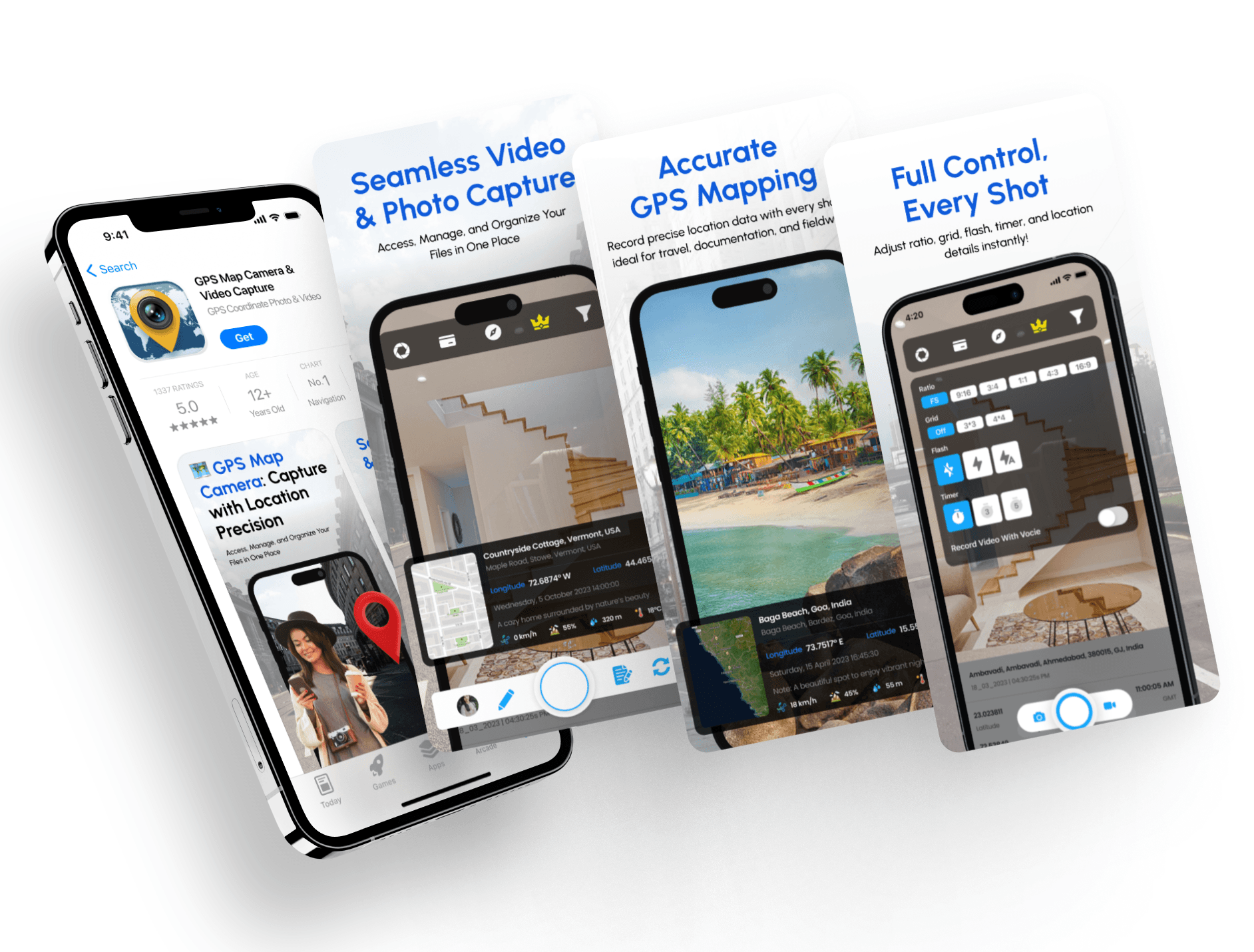 The app helps users capture photos and videos with live GPS data. To start, I explored the app’s actual UI and features to understand how it works. Since there were no previous designs or guidelines, I built the visuals from the ground up. I focused on highlighting features like GPS tagging, time stamps, and map overlays in a clean and simple way. The colors and layout were matched with the app’s UI to keep things consistent and professional.