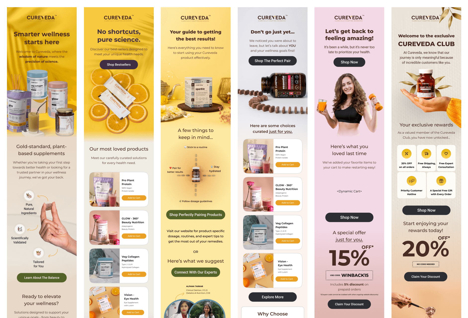 I aimed to bring Cureveda’s brand to life by designing an email that balances aesthetics and functionality, ultimately boosting user engagement with engaging visuals and seamless user interaction.