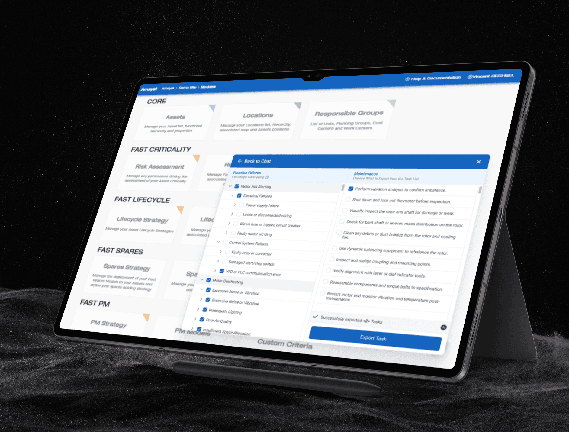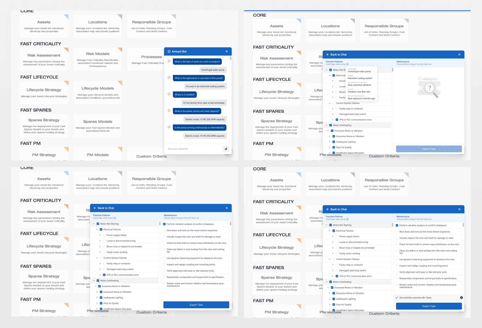 I focused on making the task selection process simple and guided, so users can move from identifying an issue to exporting the correct maintenance steps with less effort.