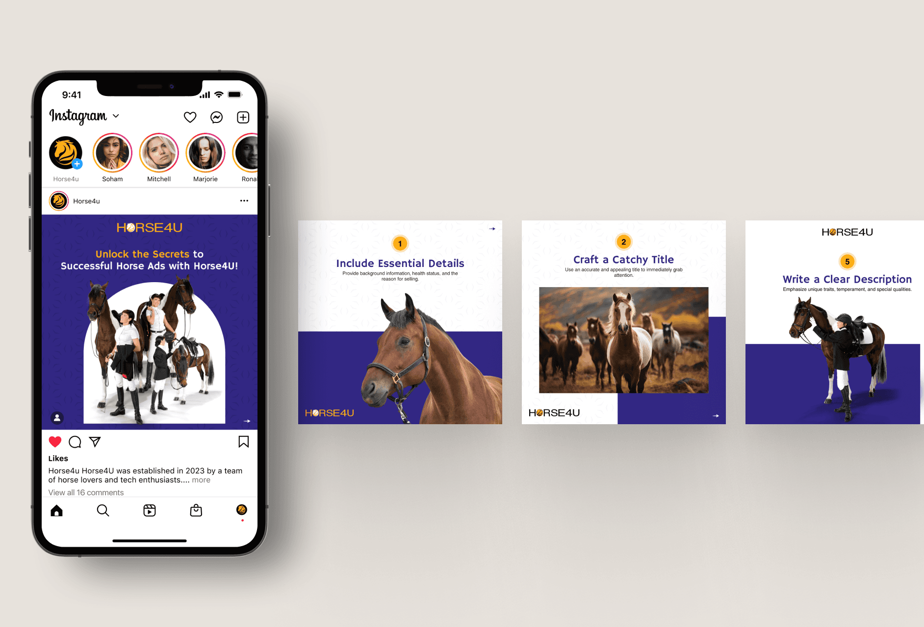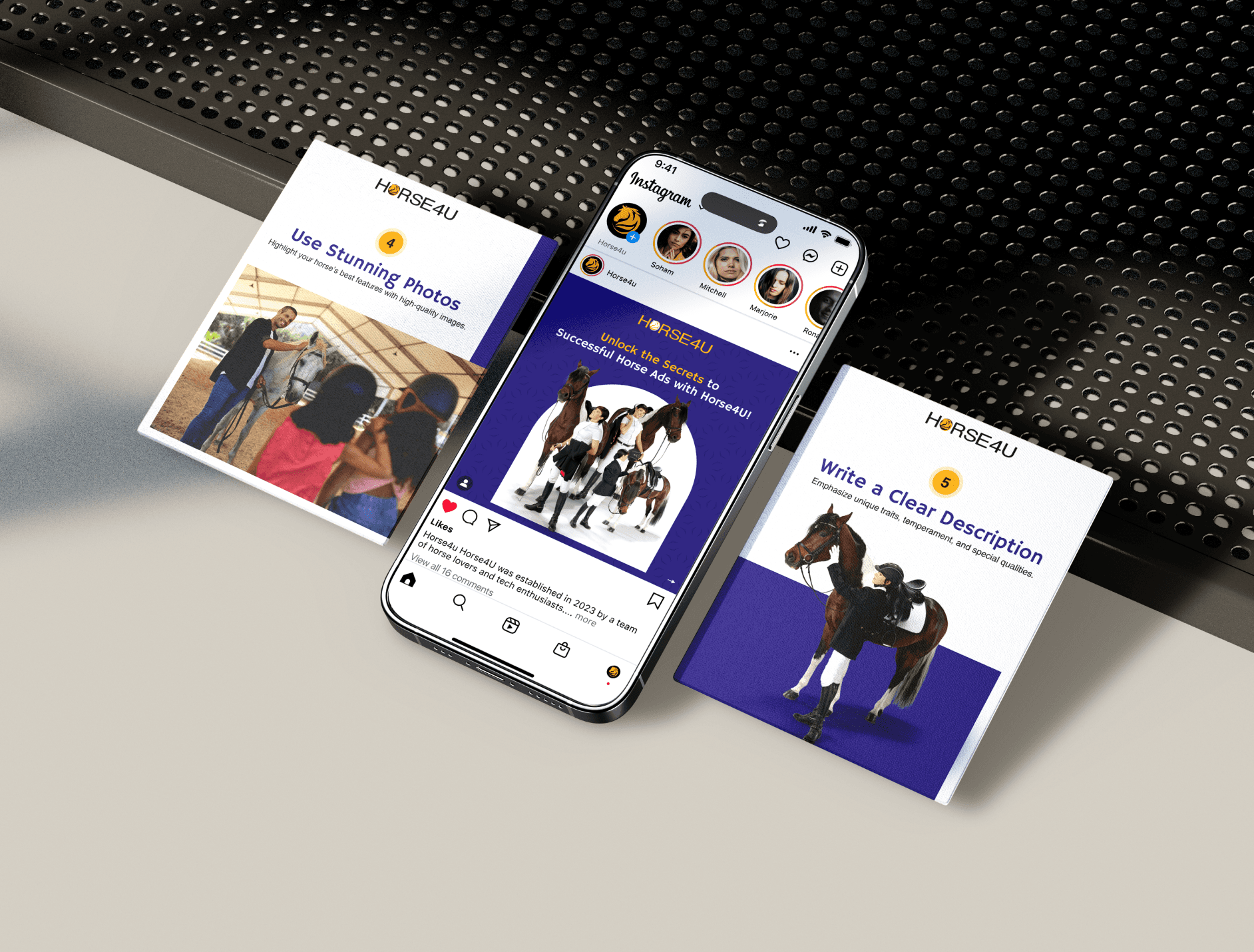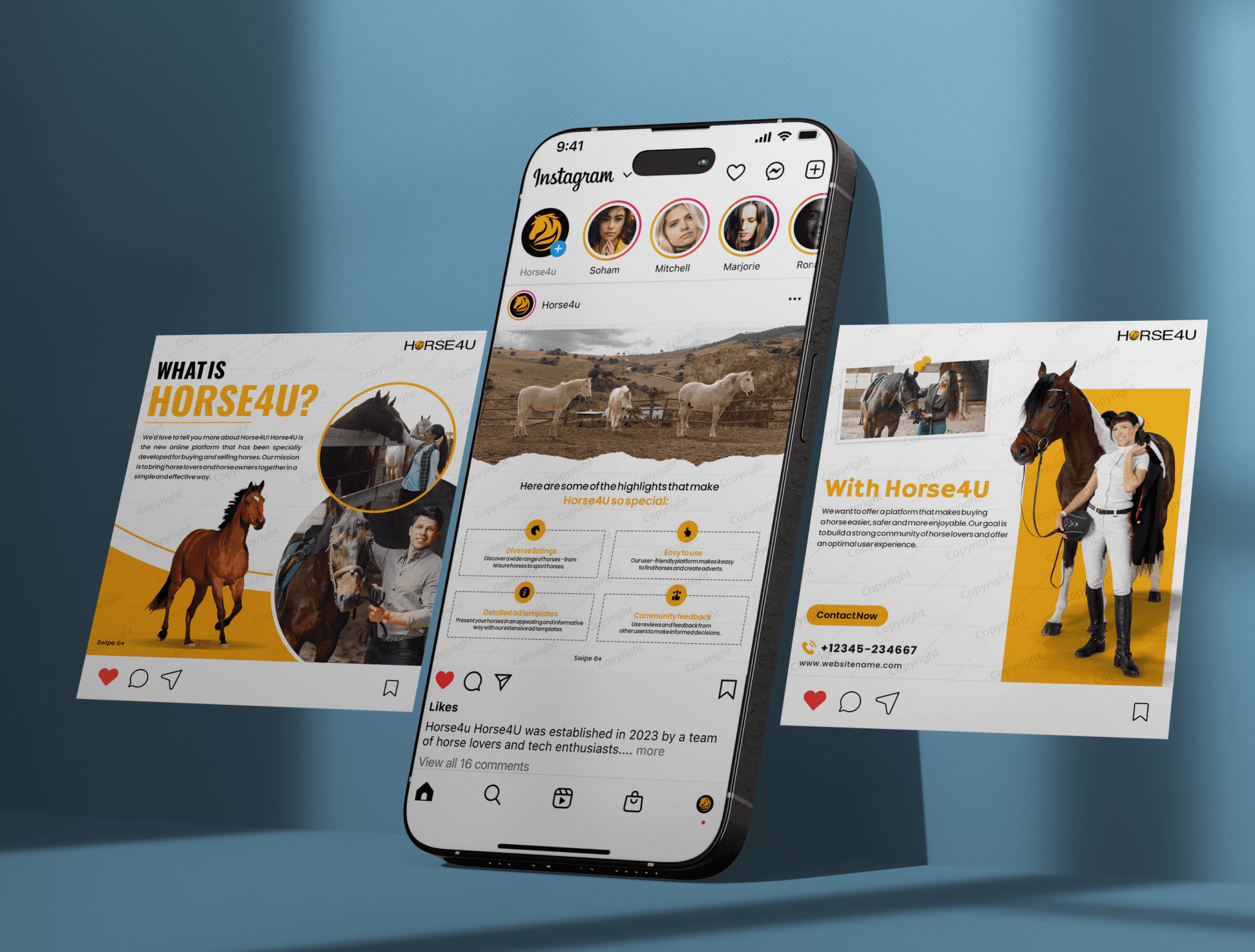 I aimed to give Horse4U a strong visual identity on social media by designing posts that clearly explain the platform while keeping the look modern and premium.