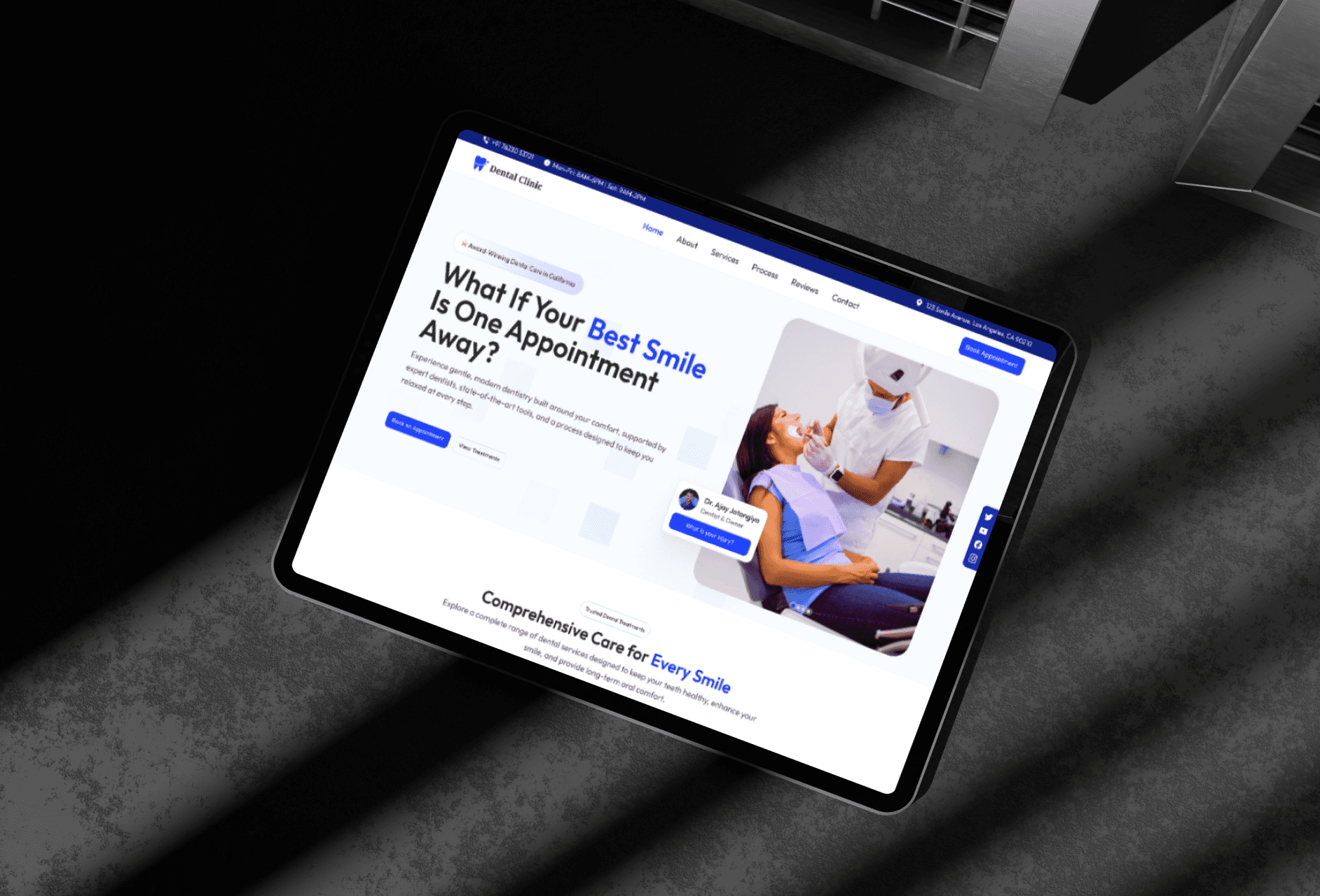 This project was focused on designing a modern dental clinic website. The goal was to improve clarity, build trust, and make it easy for users to explore services and book appointments. The design simplifies information and guides users step by step.