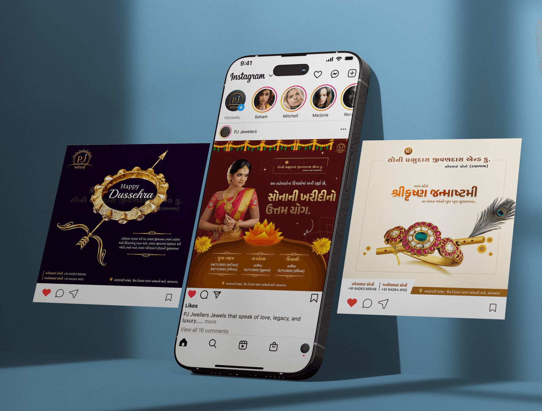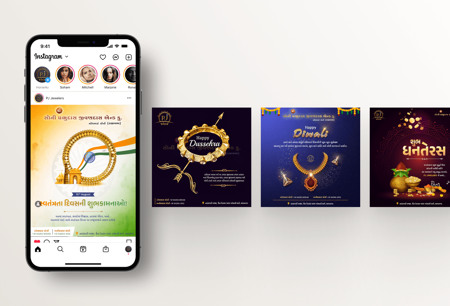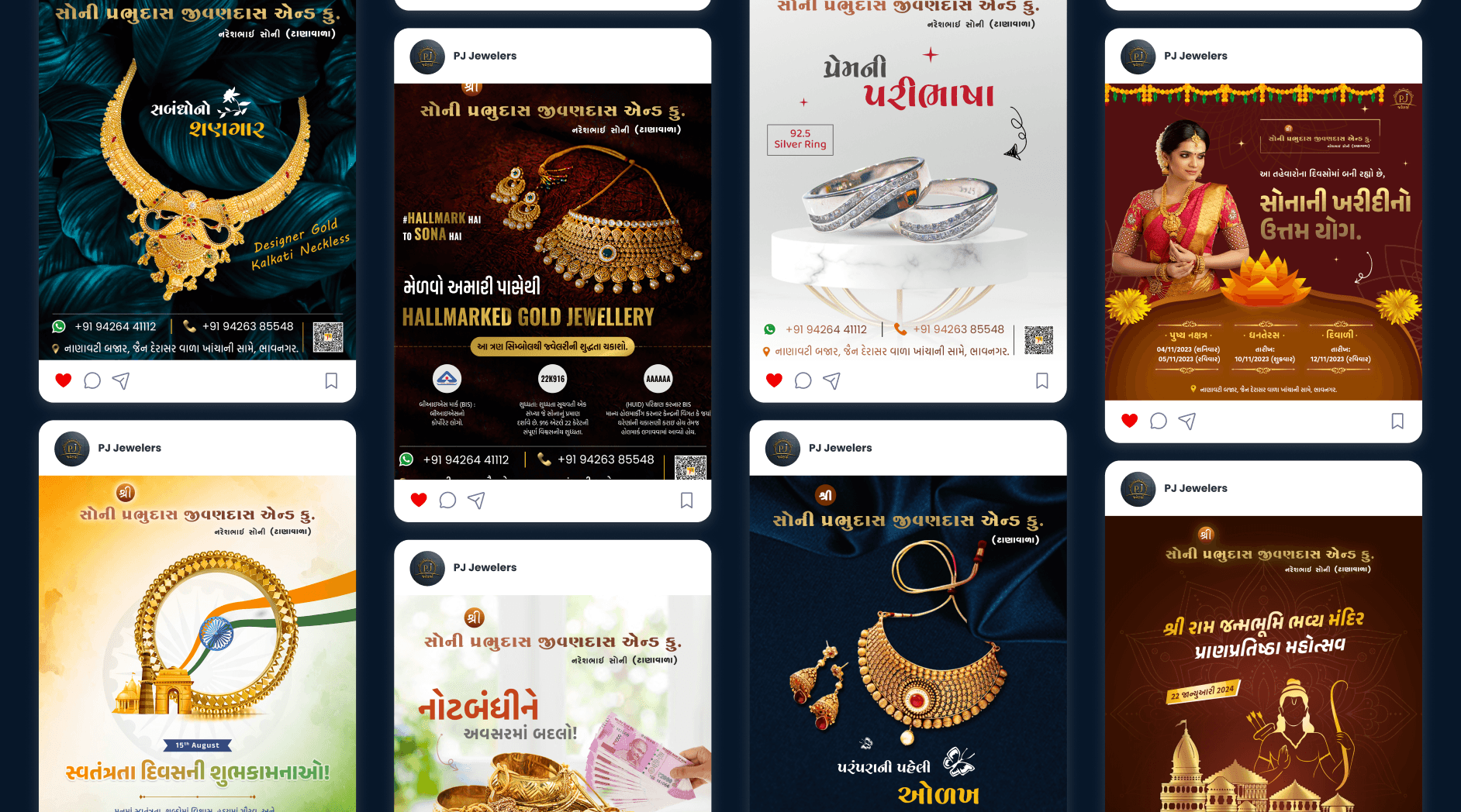 Before the redesign, the posts lacked uniformity and did not fully engage the audience. After the new design, the post looks polished and professional, which improves brand perception and helps PJ Jwellers stand out on social media.