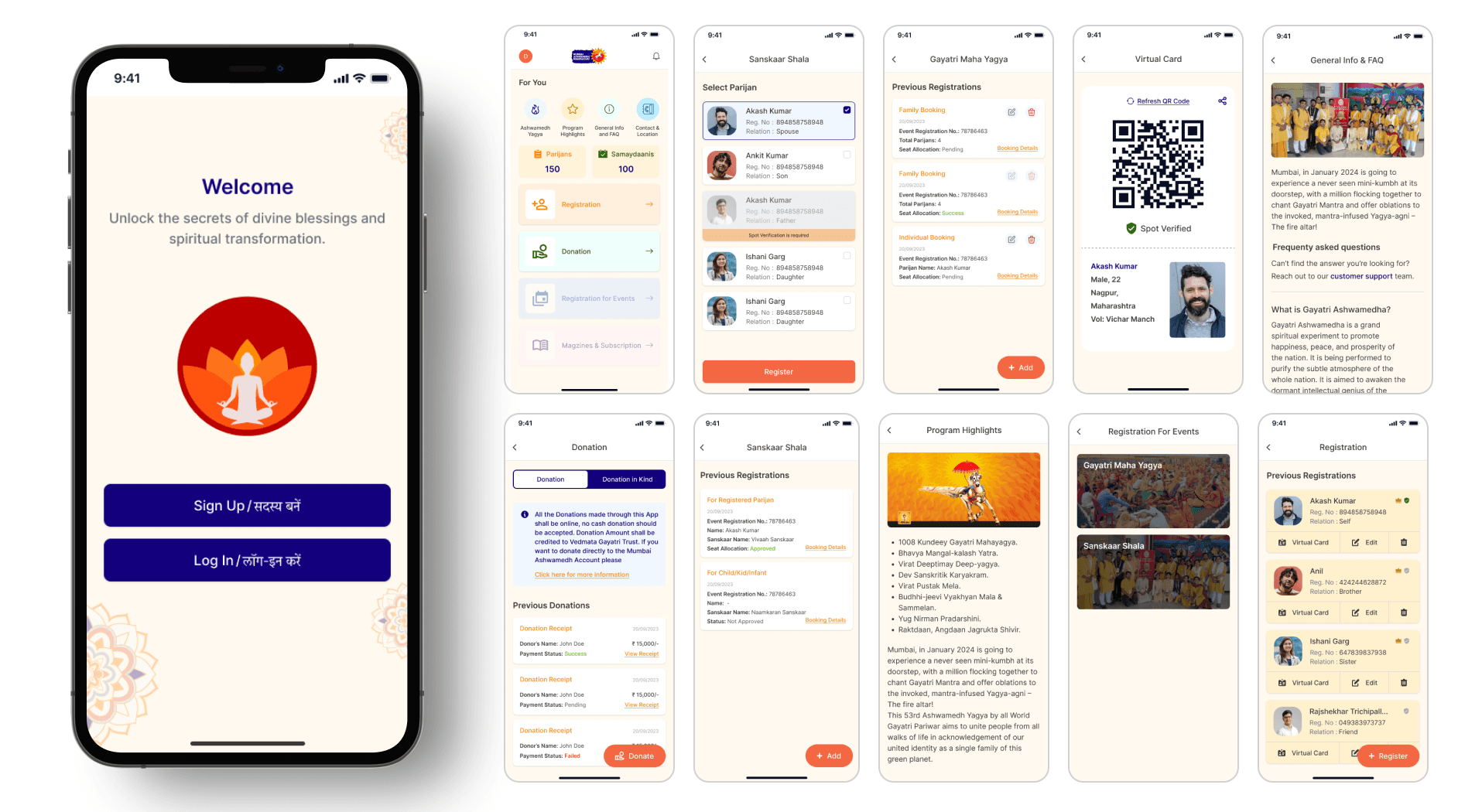 YAJAN is an event management app for AWGP’s Ashwamedh Yajna. It helps people register for the event, manage their families, volunteer, and get virtual ID cards. I redesigned key flows to make them simple and stress-free.