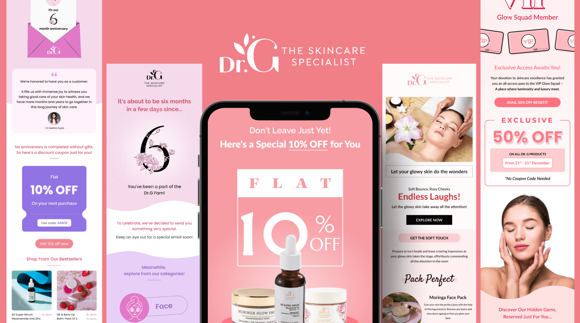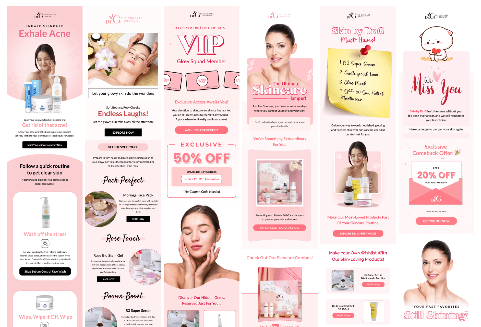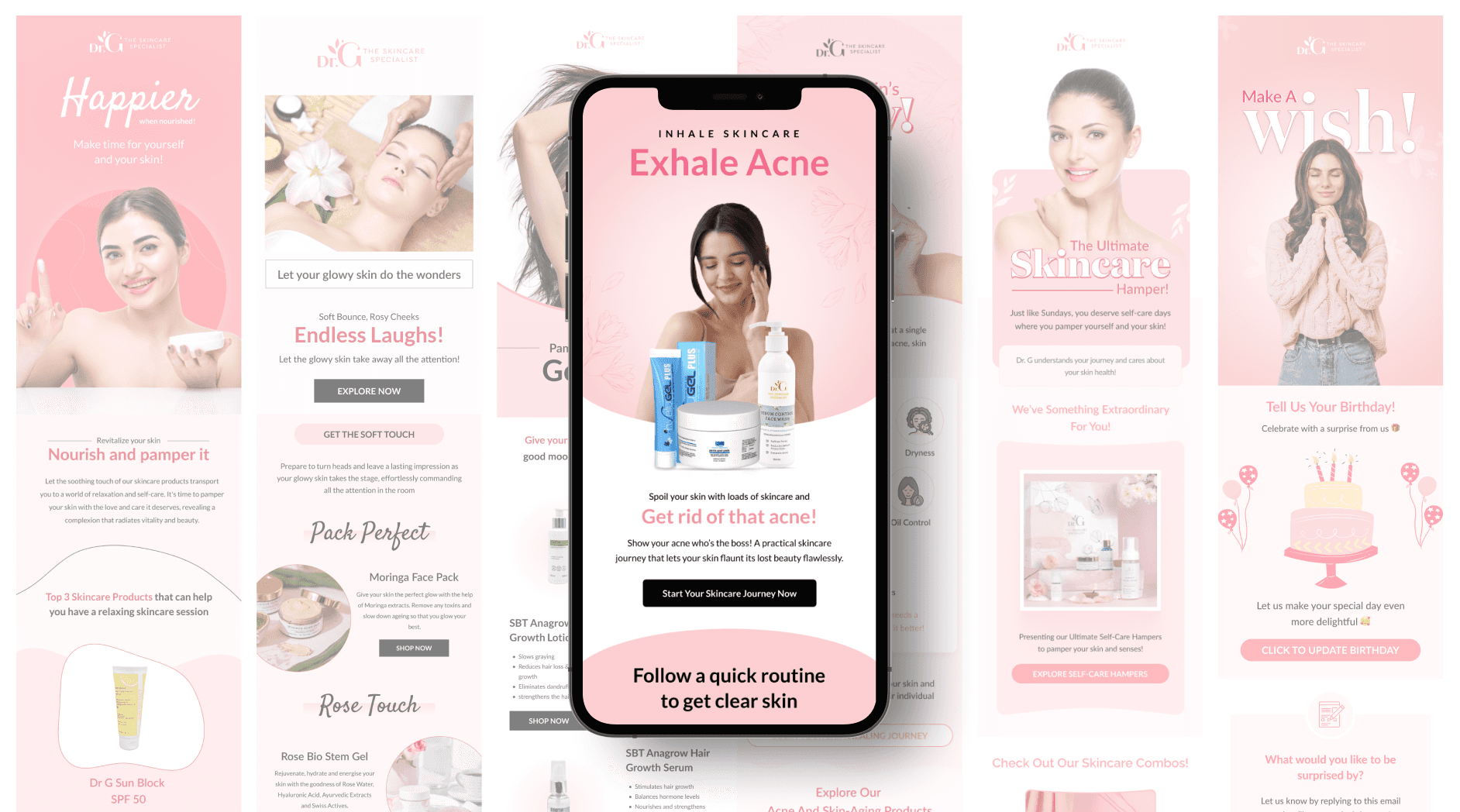 I designed over 50 campaign-specific emails for SkinbyDrG in Figma. The goal was to create a consistent look, align with brand tone, and improve user interaction.