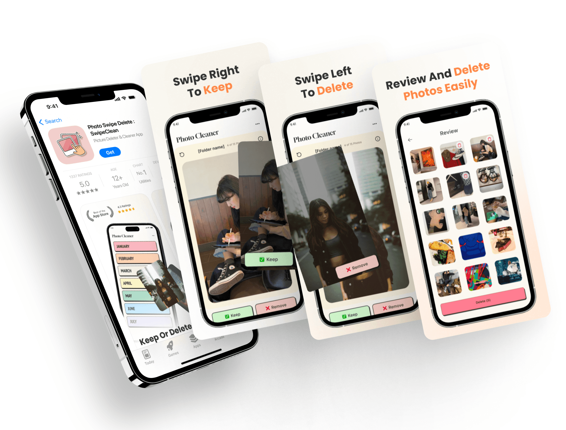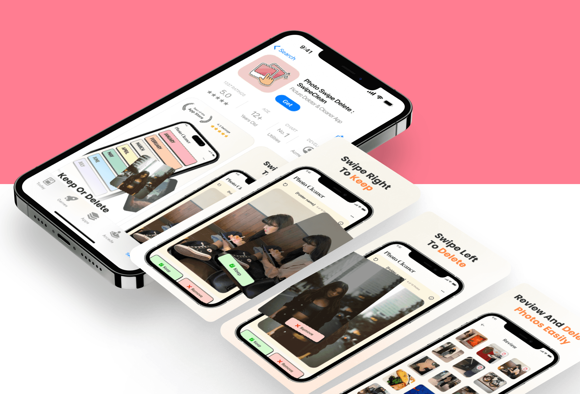 The app icon was designed to give a quick idea of deleting or swiping, using minimal shapes with a bold and modern look. For the screenshots, I focused on showing the main use cases with short lines of text and screen mockups that follow a consistent style. The spacing, font sizes, and colors were chosen to feel calm and easy to follow. Since everything was created from scratch, I had full control over how the visuals guide user attention. After the redesign, the app store page looked far more informative and polished. It now communicates value clearly and quickly. The client appreciated the work and felt it gave the app a more complete presence.