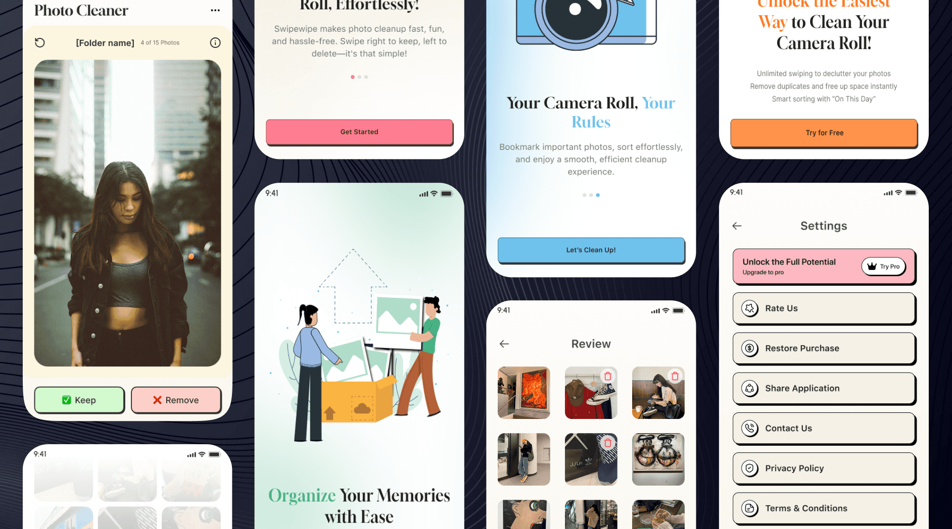 SwipeClean is an iOS app that assists users in organizing and cleaning their photo library by identifying and removing unnecessary images. I was responsible for designing the complete UI/UX and App Store visuals from the ground up using Figma.