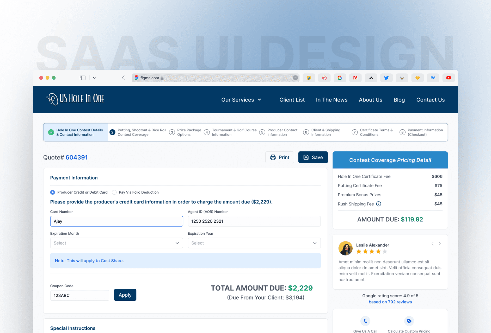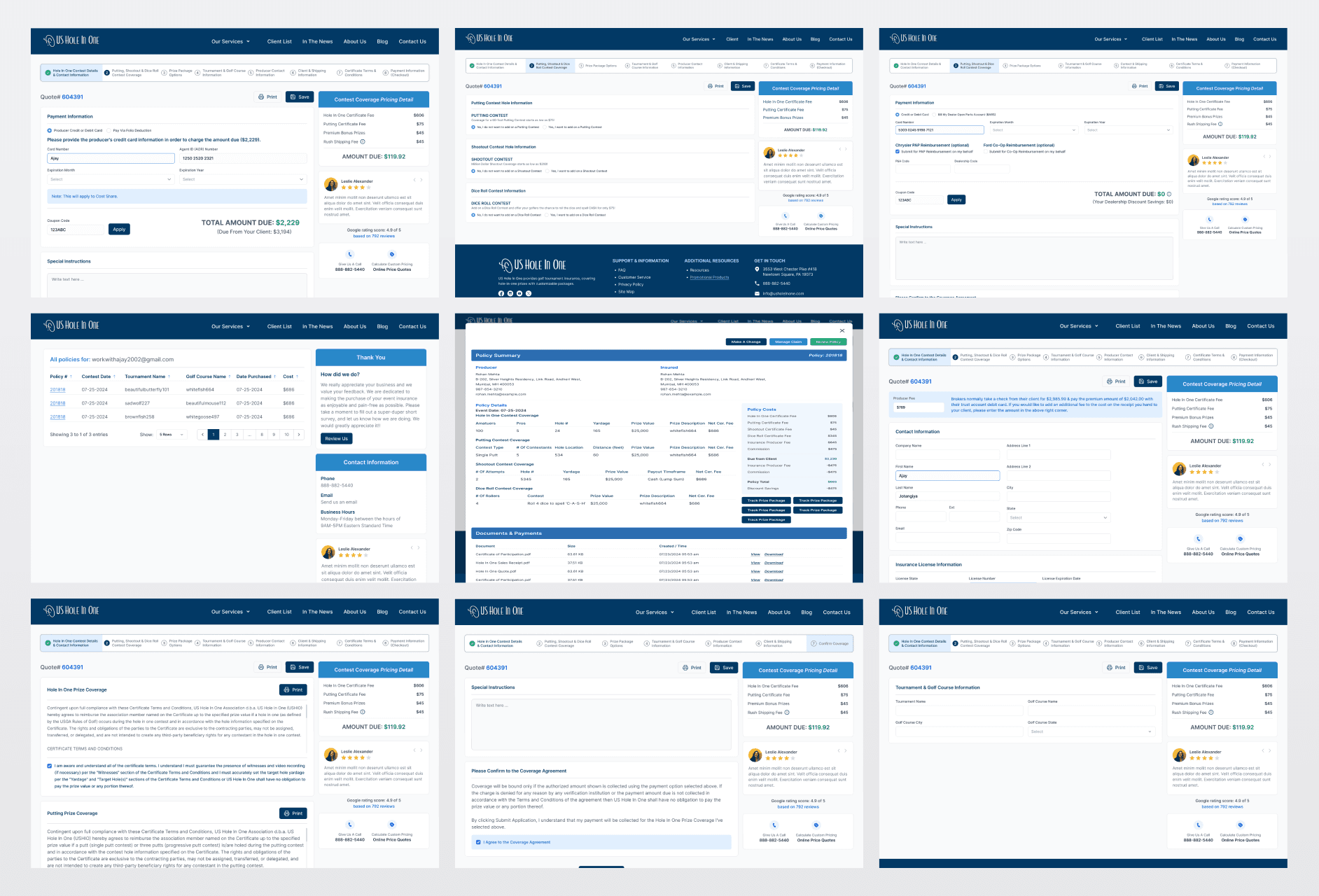 This project focused on improving the 9-step quote journey users follow when applying for golf event insurance. The goal was to reduce drop-offs and make the experience more organized and user-friendly.