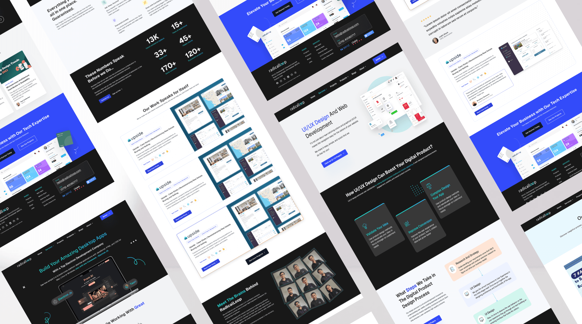 RadicalLoop required a website that effectively communicated their expertise in web, mobile, and desktop application development. The design needed to convey professionalism and guide visitors to understand services and initiate contact. Key sections included an overview of services, case studies, team introductions, and contact information.